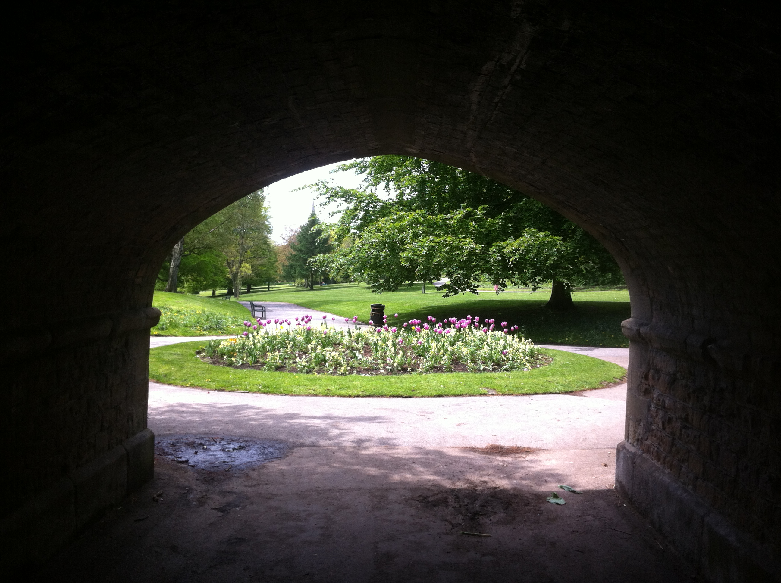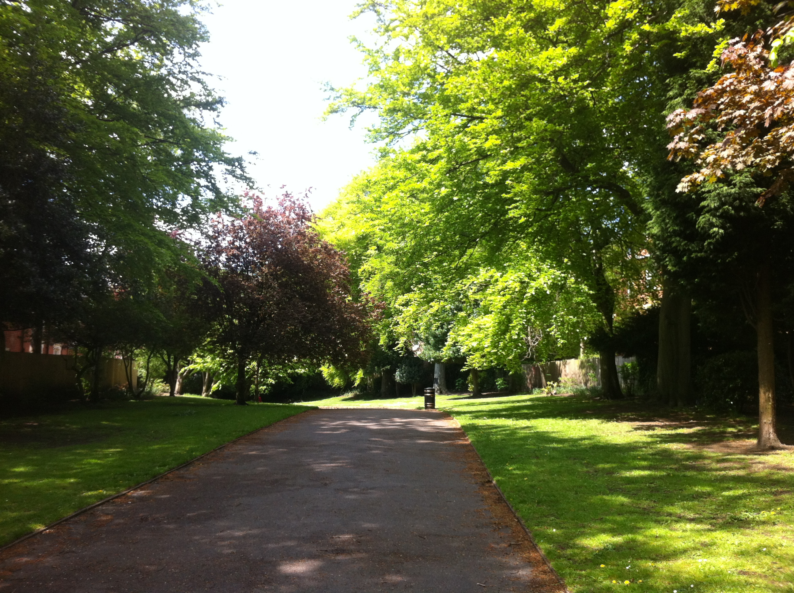 This is reached by a narrow, tree lined corridor through, connected by a tunnel to the main body of the park at its northern end. Bounded on both sides by houses, this little stretch is a kind of urban isthmus reaching out from The Arboretum – but surrounded by buildings rather than water. It’s the last gasp of the park stretching out a green tentacle, leading out to the city, or inviting it in.