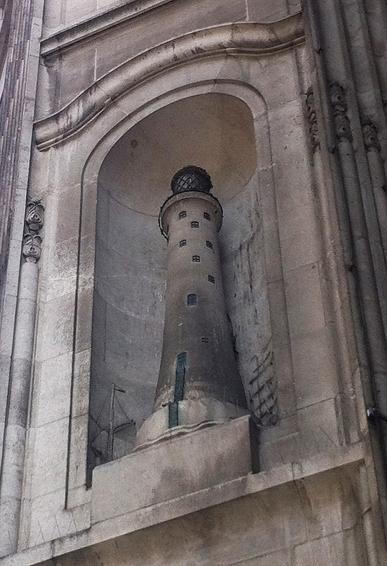 Looking away from the bleating cars below, I glanced over to the right hand side of the road. There on the facade of a bank, was a lighthouse sculpted into the corner of the building, with a pair of full-masted merchant ships in relief sailing alongside. It’s one of several nautical carvings on the building’s Portland Stone facade.
