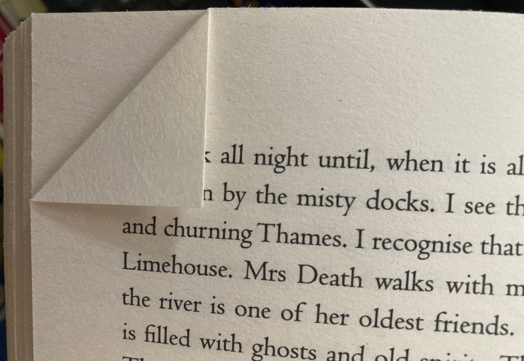 When this happens to me, a bad-book habit is triggered and I turn down corners to mark the occasion. As a child of booksellers, I am very much aware just how triggering this can be for some readers. Many book lovers have a visceral hatred for the practise and those who indulge in it – the defacing, deforming and ruining of a perfectly good book. For many, folding a corner is the very worst thing you can do to a book – more extreme even than leaving it lying face-planted on the floor, when wandering off to attend to something else. More terrible still is committing this act wilfully against a defenceless hardback.
