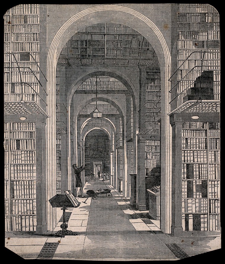 Credit: The British Museum: the Arch Room of the library, in the north wing of the museum, west end. Wood engraving, 1851. Wellcome Collection. Source: Wellcome Collection.