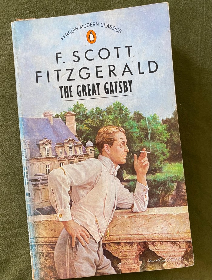“Already it was deep summer on roadhouse roofs and in front of wayside garages, where new red petrol-pumps sat out in pools of light, and when I reached my estate at West Egg I ran the car under its shed and sat for a while on an abandoned grass roller in the yard. The wind had blown off, leaving a loud, bright night, with wings beating in the trees and a persistent organ sound as the full bellows of the earth blew the frogs of life…”